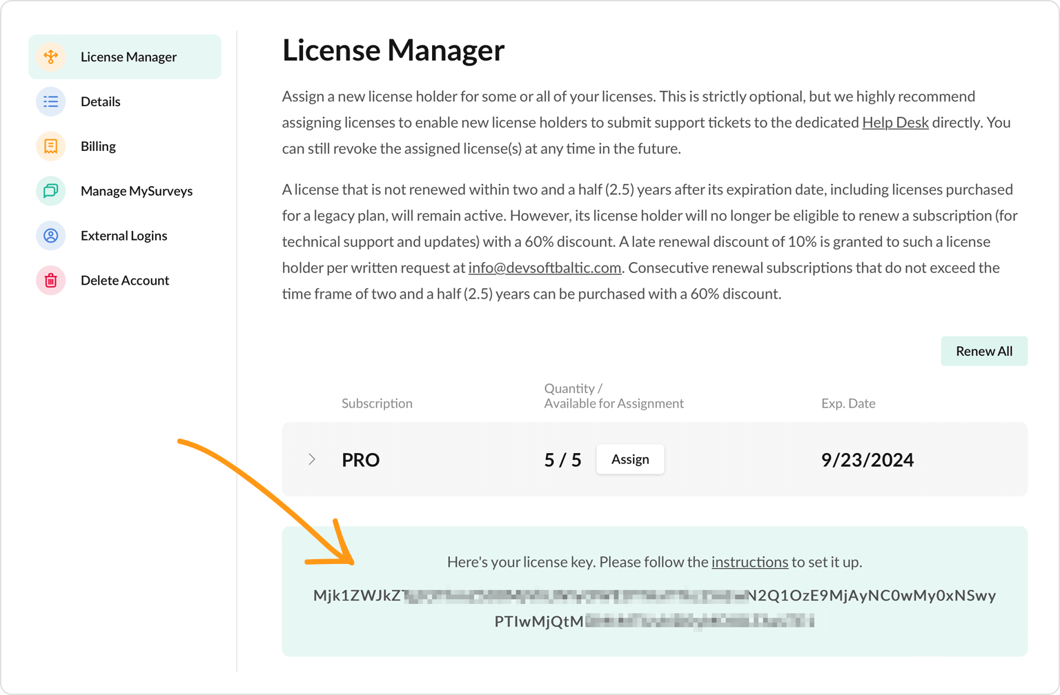 As the license owner, you can assign up to all of your purchased license seats to developers on your team or to outsourced ones. This is optional, but we recommend it because assigned developers get direct access to the license key and our Help Desk. All licenses always remain visible in your account's License Manager.